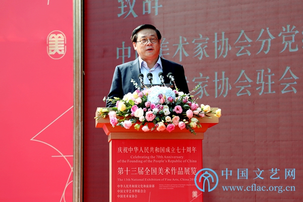 9月22日,“第十三届全国美术作品展览油画作品展”在重庆开幕。图为中共重庆市委副书记、重庆市人民政府市长唐良智在开幕式上致辞。中国文艺网 韩雪竹摄