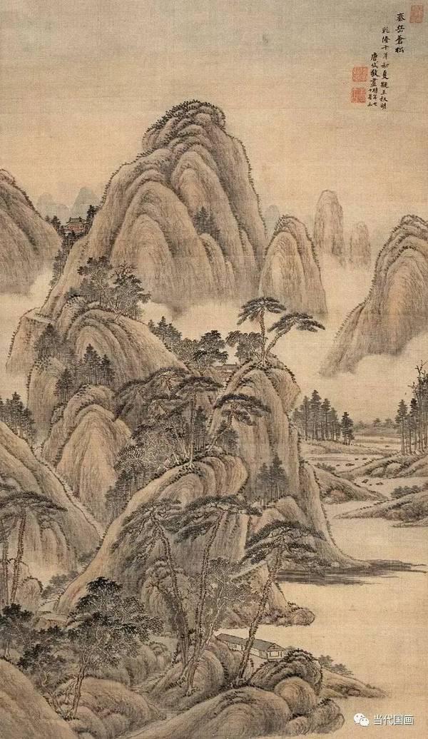 五、画状元:唐岱 唐岱,满洲正白旗人。承祖爵,任骁骑参领,官内务府总管,以画祗候内廷。山水画初从焦秉贞学,後与王敬铭、张宗苍同为王原祁弟子,名动京师。康熙帝甚赏其画,常召作画,赐称“画状元”。并尝题其千山落照图,有句云“我爱唐生画,屡索意未已”,“位置倪黄中,谁能别彼此”。雍正中正式入宫至乾隆十一年左右出宫。