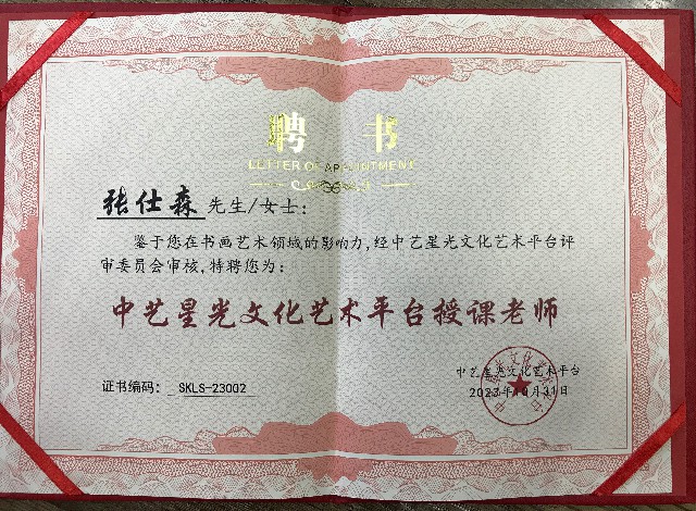 ![]() 艺术平台授课导师合影 为了贯彻党在二十大报告中提出的伟大号召,“推进文化自信自强,铸就社会主义文化新辉煌”,中艺星光文化艺术平台于2023年10月31日在北京国家新媒体影视基地隆重举办了中艺星光合作与发展大会,本次大会吸引了全国各地近三百位领导、嘉宾以及艺术从业者。中艺星光绿色书画平台自2023年初成立,截止10月31日已成立85个管理中心,近千家工作站,1万多名会员。在本次书画展的开幕式上,文化部原副部长、国家博物馆首任馆长潘震宙部长为中艺星光绿色书画平台的新晋中心主任颁发了聘书,中艺星光绿色书画平台以实际行动促进社会主义文化的繁荣与发展。